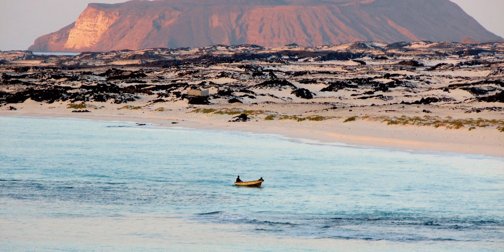 Behind us, a blanket of blinding white sand drifted two thirds the way up black volcanic mountains. The finger-like peaks rose up like a photographic negative taken of the Alps, that is until you looked closer and saw that palm trees rather than pines fringed the bottom of the scene. In the opposite direction the turquoise waters of a halfmoon bay ran out into the calm, deeper blue of the Arabian Sea. A calmness that was only disturbed by pods of dolphins that swam in and out of the natural harbor in search of tuna.