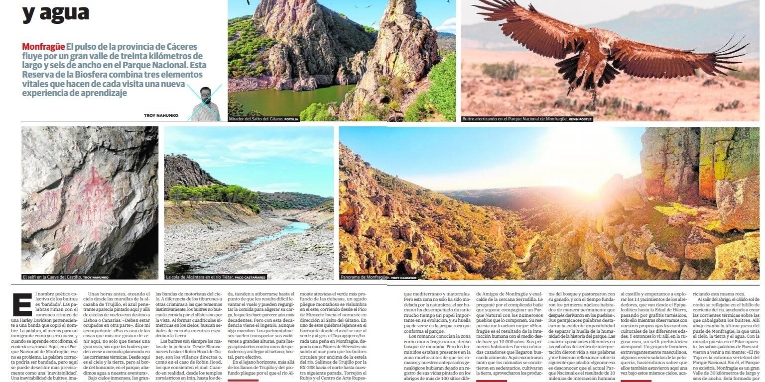 El pulso de la provincia de Cáceres fluye por un gran valle de treinta kilómetros de largo y seis de ancho en el Parque Nacional de Monfragüe. Esta Reserva de la Biosfera combina tres elementos vitales que hacen de cada visita una nueva experiencia de aprendizaje.La ultima de mi serie de seis partes sobre viajes por la provincia de Cáceres publicada por el HOY.