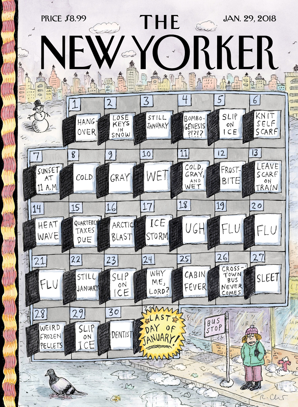 Yorker magazine where January was depicted as an advent calendar filled with various