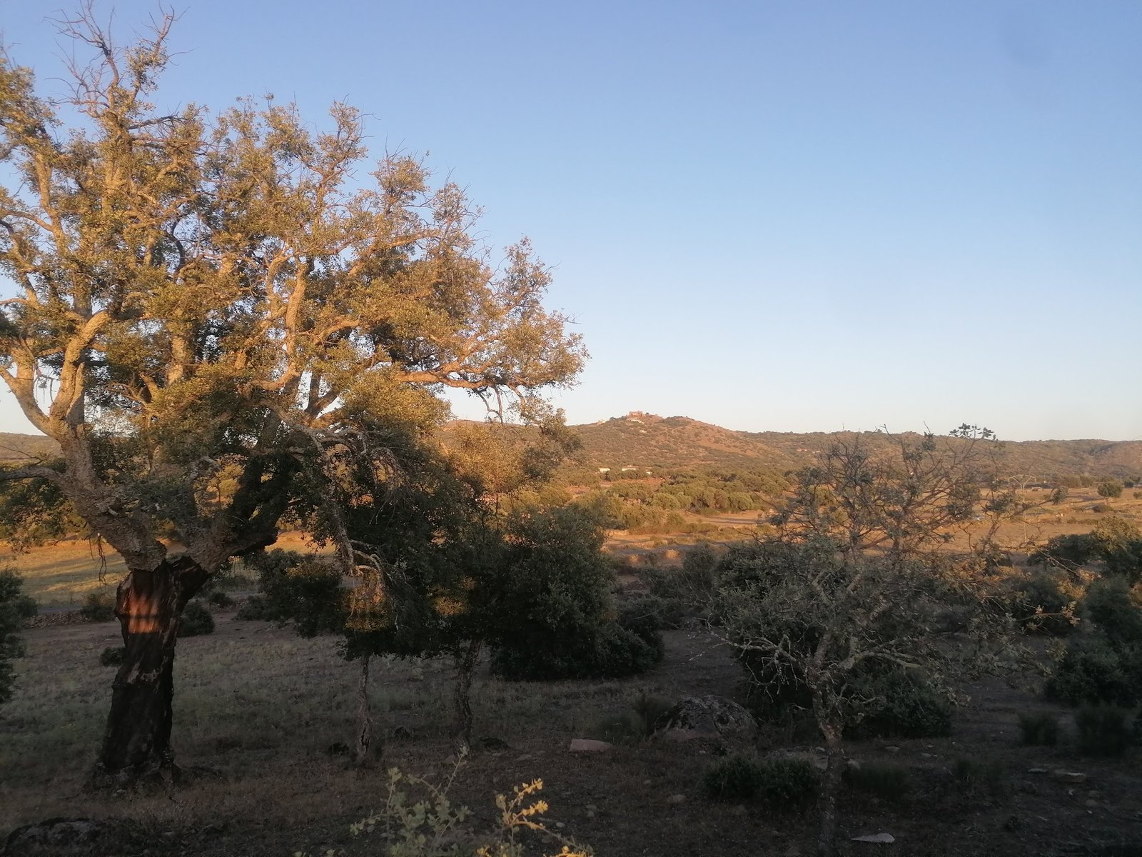 “The sweep before us was more than 180 degrees. The savannah, some 1300 feet below, rolled off into the far-off confines of the horizon and was fringed with the blueish humpbacks of breaching sierras. The checkerboard of holm oak trees that made up the dehesas pixelated the undulating topography of differing shades of green and parched beige. White specks of small villages broke up the scene like tiny errors on a tactile screen.”