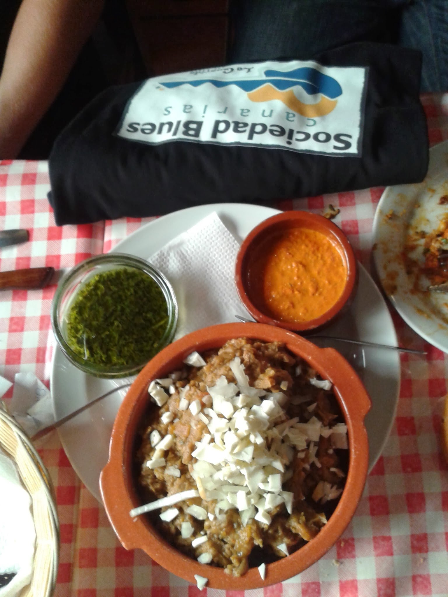 In my downtime when I’m not writing, I play music…guitar to be precise. In fact, it was a guitar that led me to 48 states and Europe for the first time. The Sociedad Blues Canarias invited me down to the Canary Islands to make some music and on the island of Tenerife under the wing of the society’s president, Alberto Gulias Velazquez, I was introduced to gofio for the first time. Gofio is a roasted grain that is a staple on the islands and above it’s mixed in an ‘Escaldón de carne’ with some delicious mojos up top to get our mojos ‘a workin!